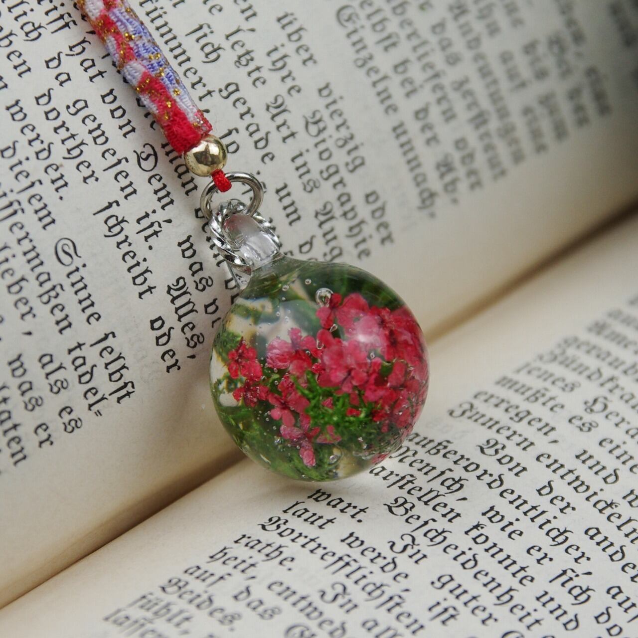 赤いお花を何層にも分けて立体的に封入した実です♪