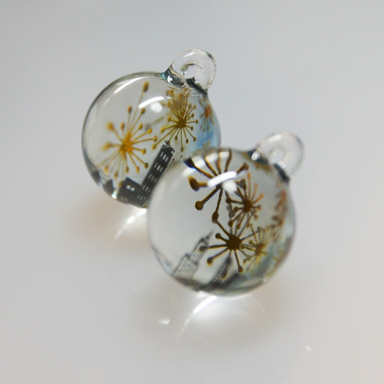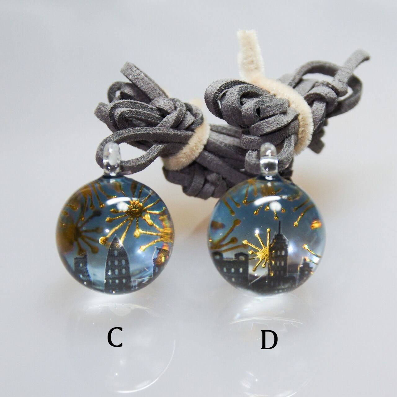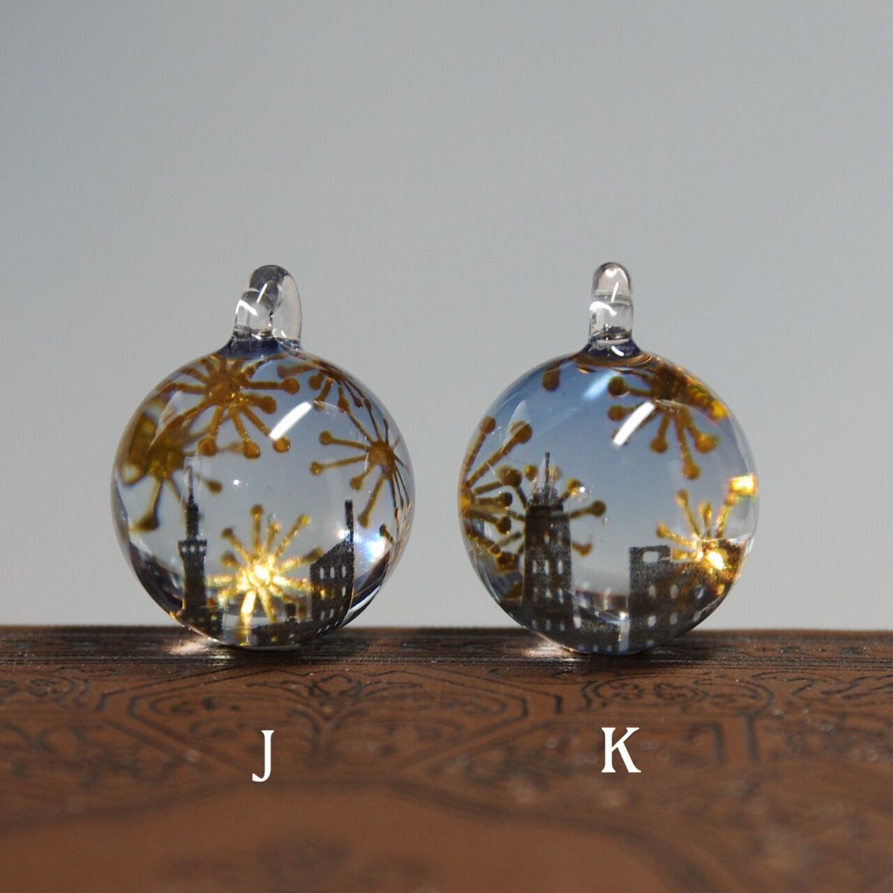 街のシルエットの後ろで花火がはじける元気な作品です♪